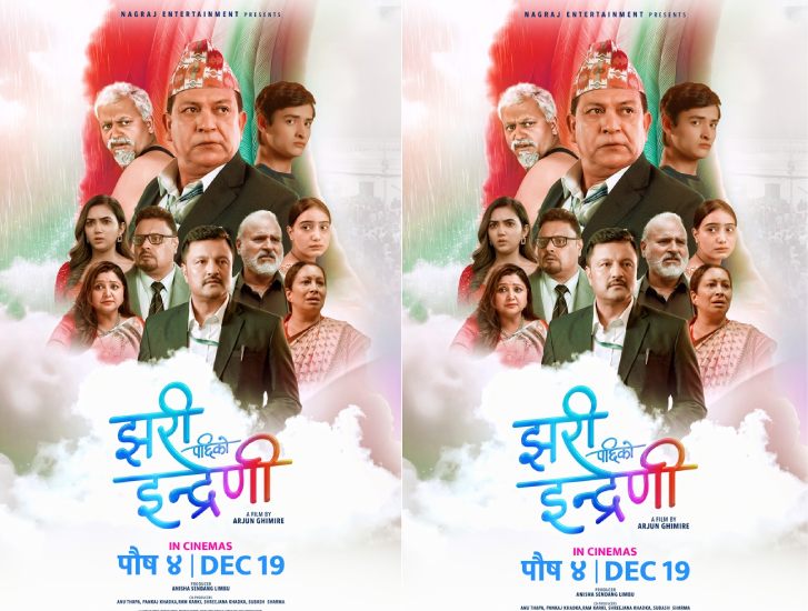 काठमाडौँ । हास्य कलाकार अर्जुन घिमिरे (पाँडे) को डेब्यु निर्देशनमा तयार भएको फिल्म ‘झरीपछिको इन्द्रेणी’ को पहिलो पोस्टर सार्वजनिक गरिएको छ । आइतबार सार्वजनिक पोस्टरमा फिल्मका अधिकांश प्रमुख पात्रलाई आफ्ना–आफ्ना क्यारेक्टर लुक्समा प्रस्तुत गरिएको छ, जसले फिल्मको कथा र परिवेशबारे पहिलो झलक दिएको छ ।