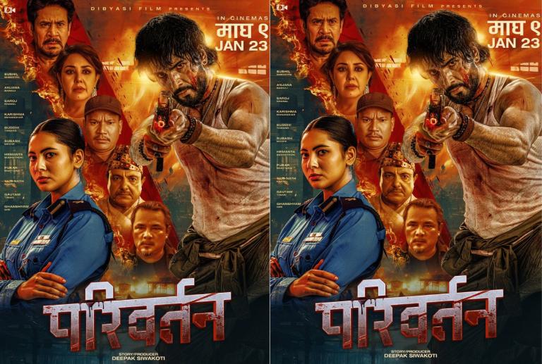 काठमाडौं। दिब्यासी फिल्म्सको ब्यानरमा तयार भएको नेपाली फिल्म ‘परिवर्तन’को दोस्रो पोस्टर सार्वजनिक गरिएको छ। निर्माण टिमले बुधबार रिलिज गरेको पोस्टरमा सात मुख्य कलाकारलाई आफ्नै–आफ्नै क्यारेक्टर लुक्ससहित प्रस्तुत गरिएको छ।
